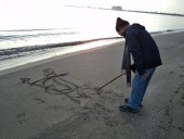 L’homme écrit sur le sable. Moi ça me convient bien ainsi ; l’effacement ne me contrarie pas ; à marée descendante, je recommence.