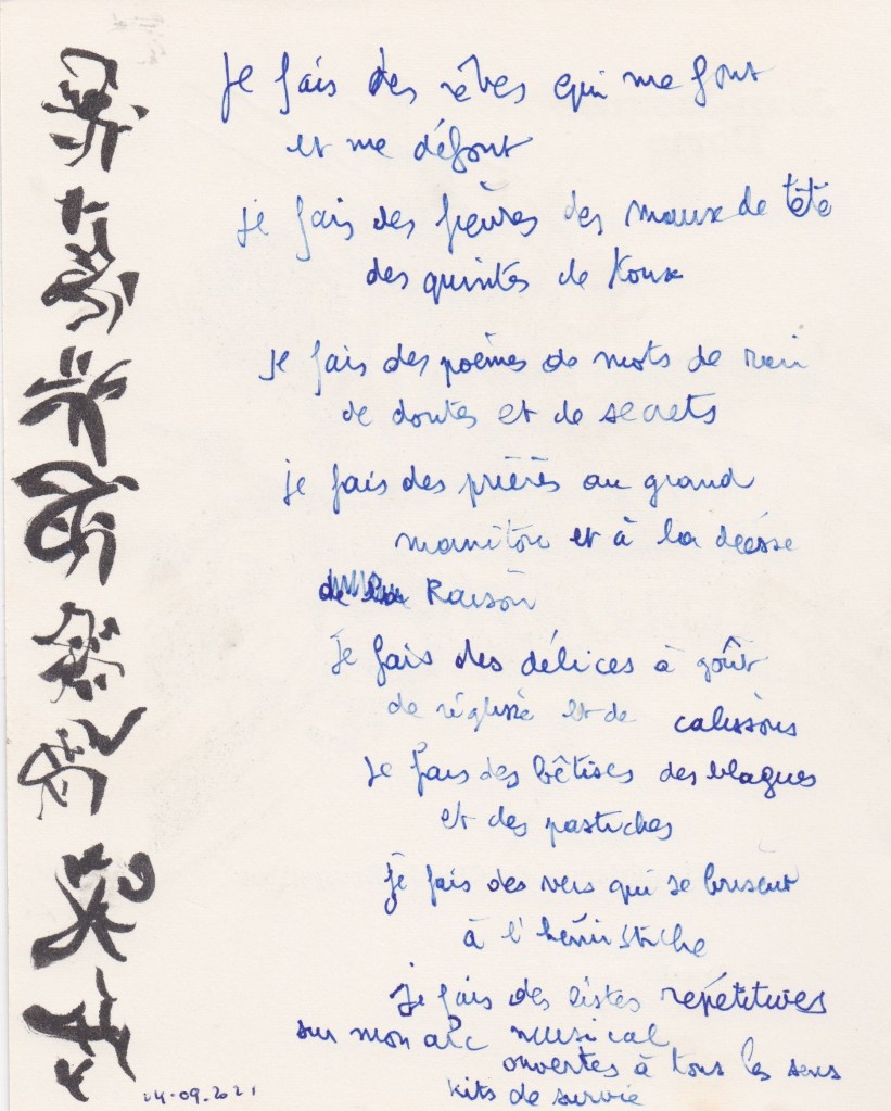 Je fais des poèmes des mots de rien de doutes et de secrets