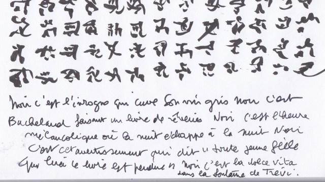 9 Noir c’est l’ivrogne qui cuve son vin gris Noir c’est Bachelard faisant un livre de rêveries Noir c’est l’heure mélancolique où la nuit échappe à la nuit Noir c’est l’avertissement de la Nouvelle Héloïse : Toute jeune fille qui lira ce livre est perdue Noir c’est la dolce vita dans la fontaine de Trévi
