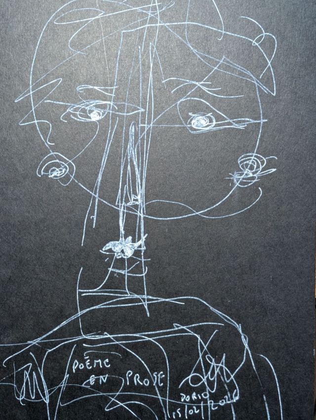 POÈME EN PROSE n’est pas mon fort. Il se déplace sur cette page, oscillation à plat de l’espace et du temps, libellule du Bataclan au-dessus d’une mare de sang.