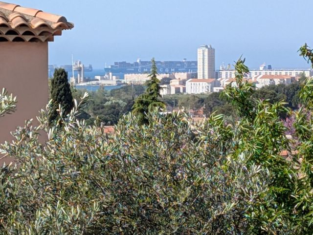 (photo prise de ma fenêtre entre amandiers, olivier et cyprès de Leyland)