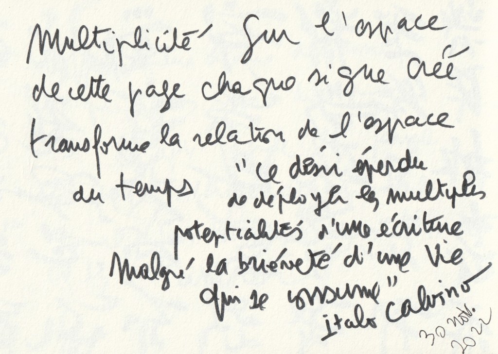 -D’abord avant de prendre ma plume, à portée de mon encrier, j’ai lu et relu la page d’un.e écrivain.e que j’aimais particulièrement. Non pour l’imiter (j’avais déjà « donné » avec mes pastiches), mais pour me stimuler, m’éveiller et me mettre à écrire ce que personne d’autre au monde n’avait jamais osé publier sous la forme d’un livre.