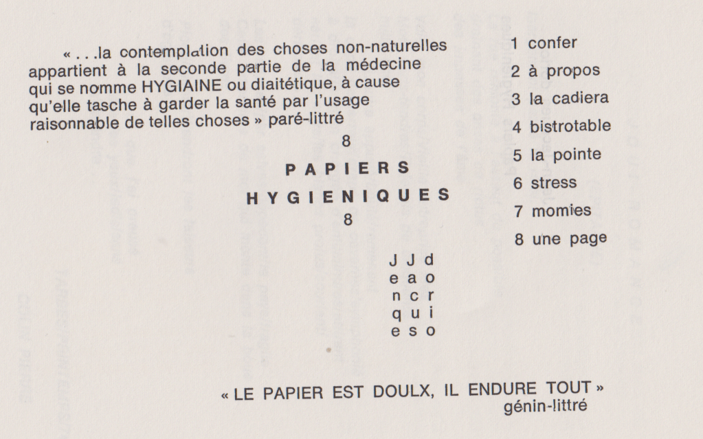 4h12 C’est dans « l’Almanach des Muses » que Chateaubriand publie le 12 décembre 1789, ses premiers vers. Il a vingt et un ans. Deux ans plus tard, il prend le bateau pour le Nouveau Monde. Comme lui, à 23 ans, à l’automne 1968, j’ai connu l’Amérique. Mais la mienne était au sud (Caracas), quand la sienne fut au nord (Baltimore). Mes premières « pièces fugitives » furent publiées dans un recueil à quatre mains, appelé « Remiremots ». François, le vicomte breton, avait intitulé ses premiers essais poétiques, « Le cri du cœur ». J’intitulais les miens, publiés dans ce format dit « à l’italienne », « Papiers Hygiéniques ». Mais, plutôt que les rouleaux destinés à ce « lieu », prisé disait-on du poète Mallarmé, il s’agissait, on l’aura, je l’espère, compris, de ces papiers que l’on écrit en faveur de son hygiène mentale. « Le papier est doux, il endure tout. » 4h22
