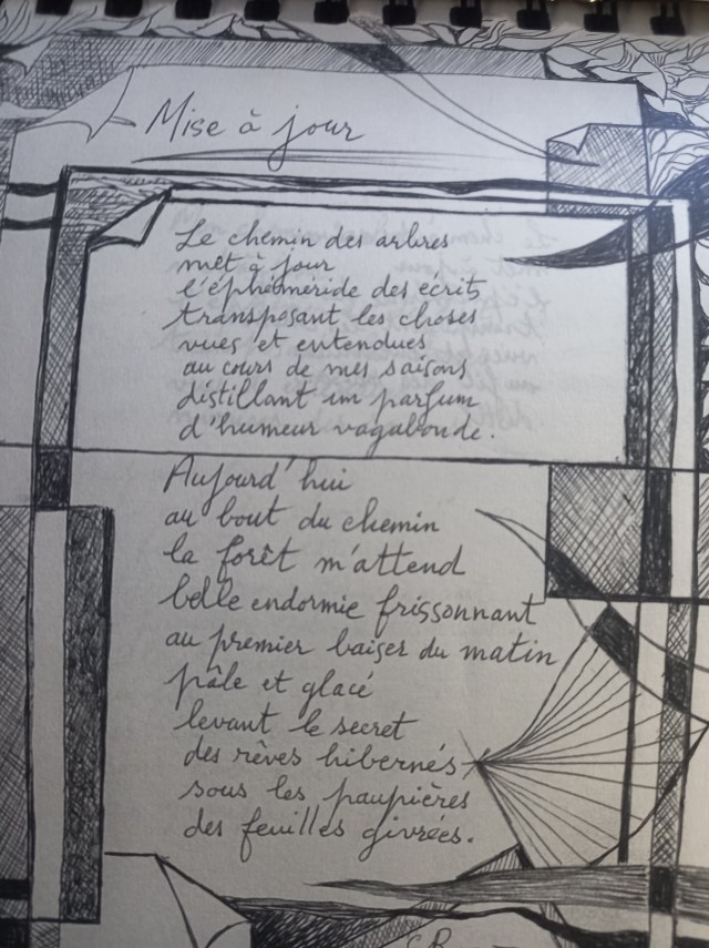 Aujourd'hui au bord du chemin La forêt m'attend Belle endormie frissonnant Au premier baiser du matin Claude Brugeilles Ellipses Sommeil végétal Dans la forêt de mes rêves Mon arbre gambade JJ Dorio En vis à vis