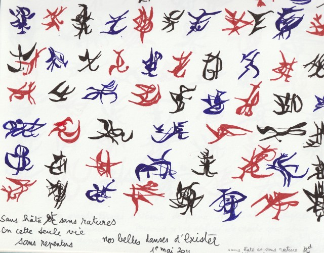 Les signes que j’écris depuis 9 ans et chaque jour, comme en hypnose, où tout vient de la faculté né de longues pratiques, de savoir peu à peu lâcher les chevaux de nos cinq sens pour devenir capable « de supporter la variété sans limite des choses et des êtres …»