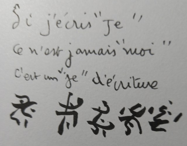 MA VIE À MOI à toi à tu Ma vie parlée et ma vie tue Ma vie l’esprit débordant du cadre de mes photographies (du bébé joufflu au dernier portrait que m’aurait fait Nadar allongé dans mon plumard) Ma vie rêvée l’ai-je bien fantasmée ? Ma vie d’un « je » ouvert par la littérature d’un reclus célèbre couchant sur le papier les vies de personnages de salon qui se croyaient immuables quand tout leur monde était en train de disparaître Ma vie à moi écrite en maints poèmes sur les ardoises du toit Ma vie donnée dans l’abécédaire d’un dictionnaire à part moi Ma vie du vieil homme et la mer Ma vie de Montaigne à sauts et à gambades Ma vie délibérément anachronique « vie fugitive » « vie devant soi » Ma vie de vieux muet assis dans le métro lisant le capitaine Fracasse en bande dessinée Ma vie croisant ces mots de l’auteur de la vie mode d’emploi : « Un père éternel » réponse « Lachaise » Ma vie de bâtons et de lettres disparaissant dans des cartes et feuillets noircis en secret entre soi et soi entre moi noir chevelu et moi blanc dégarni Ma vie et moi et toi ma conscience de l’instant qui vient séance tenante m’en libérer
