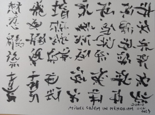 Je reconnais l'impardonnable linceul Celui qui coupe et qui éloigne Celui pour lequel nous ne sommes rien Et qui emporte inéluctable toutes les racines tous les soleils Pour un terrible amas de cendres Michel Cosem L'Âme de la Grande Ourse 422° Encres Vives Michel Cosem nous a quittés C'est dur à dire et encor plus à répéter Michel Cosem nous a quittés