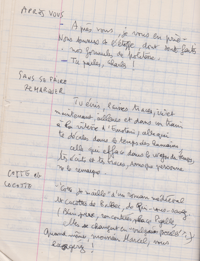 L’écrit ça arrive comme le vent, c’est nu, c’est de l’encre, c’est l’écrit, et ça passe comme rien d’autre ne passe dans la vie, rien de plus, sauf elle, la vie.