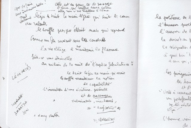 Au mitan de la guerre, « dans le mitant du lit, la rivière est profonde » de nos chanceuses vies ou de nos morts subites. « (Ce) long abus de la littérature », faisant écho au dernier vers mémorable de Verlaine sur son « Art poétique ». Mais, ici, modestement mais fermement, cest le vers premier que l’on veut rappeler : De la musique avant toute chose, car il faut craindre que la méconnaissance de tout art poétique, rende vaine la quête de ce quon a perdu, lamour des formes et toutes les nuances de mots où lindécis au précis se joint.